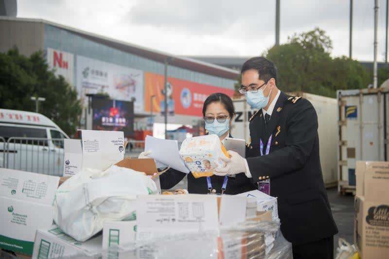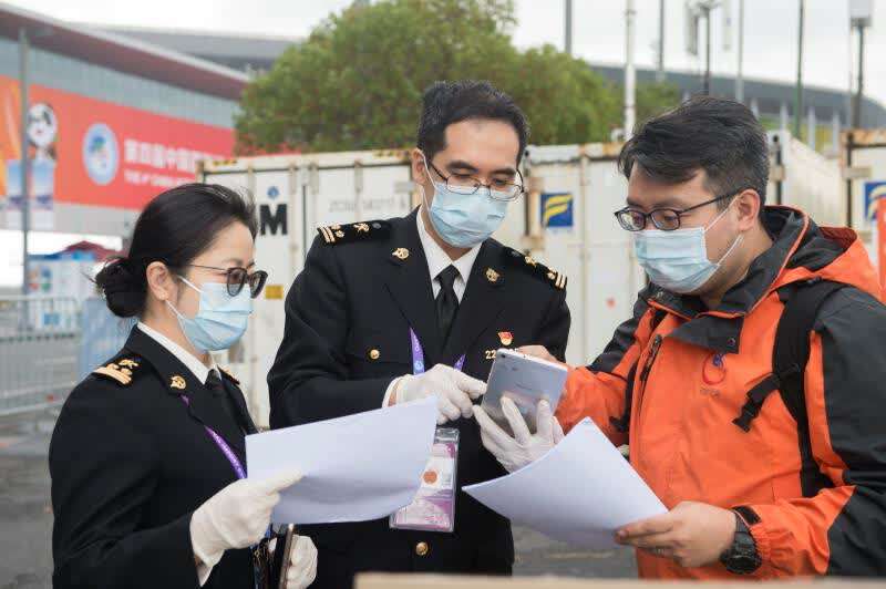 “一些参展商会因为船期、货物拼装分拨等原因,造成货物抵达较晚。为了保障展品能够赶上展期,我们在会展中心北广场开辟临时查验场地方便展品查验,实现即到即查、通关即入馆。”会展海关丁宁说。