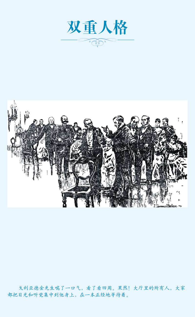 在《穷人》的姊妹篇《双重人格》中,陀思妥耶夫斯基第一次把分裂人格引入文学。一个温顺的人,由于长期遭受屈辱,内心的恶魔被激出来,仿佛潘多拉的盒子被打开,引发了一场又一场激战:忠厚与狡猾,正直与卑鄙,耿直与谄媚,诚实与欺骗,宽容与算计……