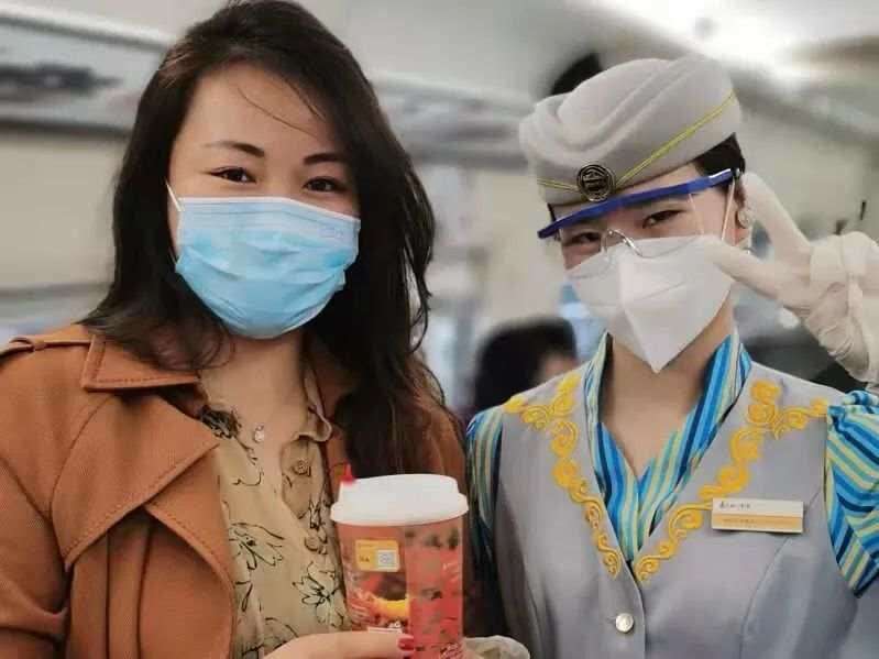 乘务员为奶茶产品代言销售 ,也成为高铁上一道独特、亮丽的风景线。