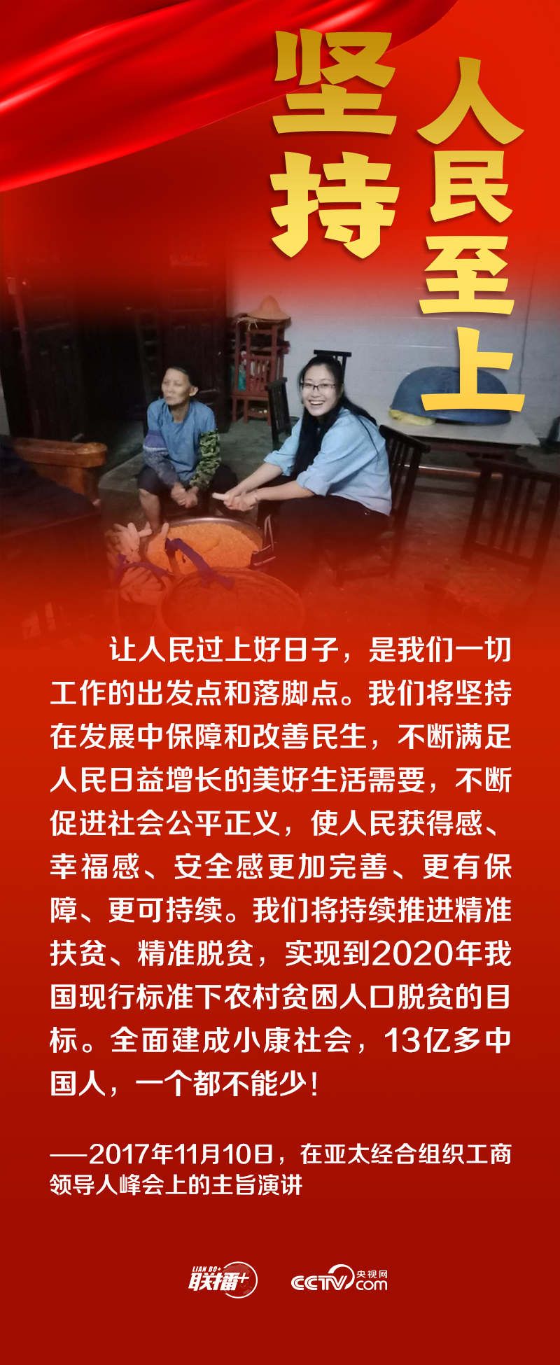 “我将无我,不负人民。”“江山就是人民、人民就是江山。”“必须始终与人民心心相印、与人民同甘共苦、与人民团结奋斗。”……在总书记心中,“人民”二字重千钧。一路走来,总书记目光的落点始终是人民。读懂总书记为民情怀,一起感悟中国共产党的宝贵历史经验——坚持人民至上。