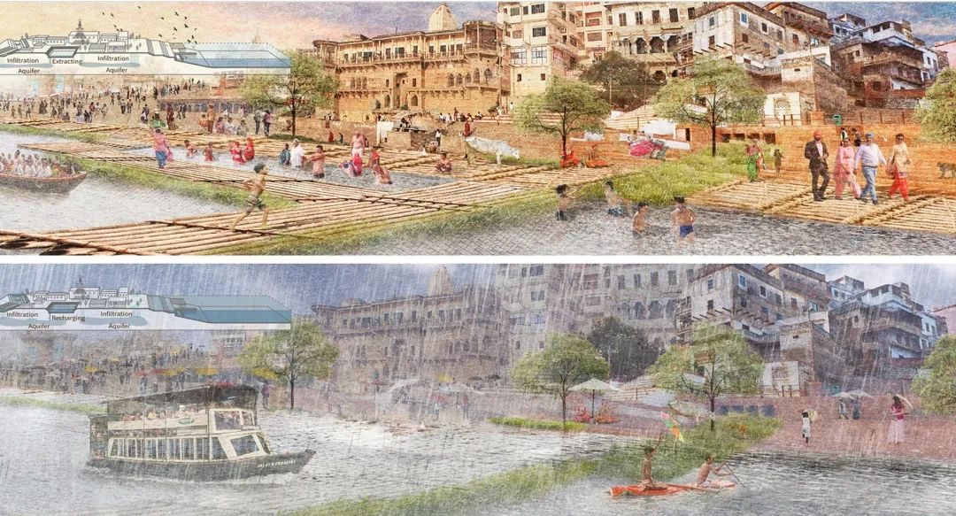“我们选了很多场地,其中最典型的场地是在印度瓦拉纳西,对这个城市的更新设计做好了,那么世界上有类似问题的城市也会有参考作用。”叶怀泽说,瓦拉纳西地处恒河边,水系复杂,雨旱季明显,解决当地清洁用水问题迫在眉睫。