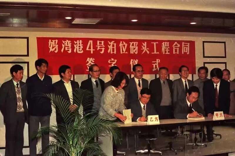 1988年,妈湾港4号泊位码头工程签约(资料图片)