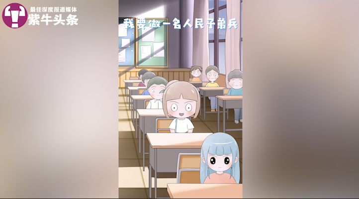 吴成敏称,除了展示日常生活外,他还想让动画更具教育意义。今年9月开学时,吴成敏创作了一段关于人民子弟兵的动画视频。开学第一天,老师站在讲台上问:“桔子,你长大了想做什么?”桔子站起来回答说:“我要做一名人民子弟兵!”