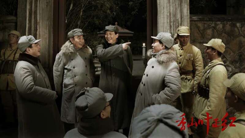 剧中,《香山叶正红》塑造的毛泽东、朱德、周恩来、刘少奇、任弼时等领袖形象,伟岸而亲和,在“开天辟地”中不失烟火气息。比如毛主席和西柏坡的老乡一起看文艺演出,喜欢吃老乡家种的辣椒,还跟老乡换旱烟抽;向村里的私塾先生借的书看完了,按时还书,还托人送去了饺子,以表谢意;开七届二中全会,毛主席不愿做新衣服,西苑阅兵,他也不愿坐豪华轿车,而是坐普通吉普车,对现场参加仪式的民主人士和英模代表的情况如数家珍。而当北平和平解放,人民解放军进入北平时,人民群众热烈欢迎,一位姑娘将一个风车插到解放军的军车上,那转动的风车呼啦作响,生动展现了党和人民之间的血肉联系。