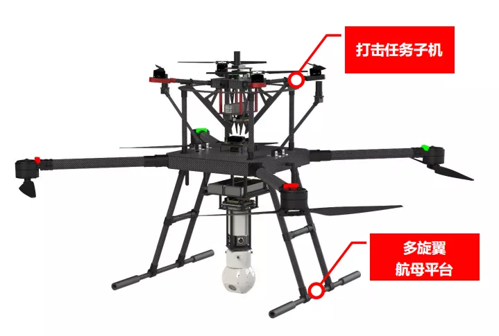 “海面上的航空母舰可以提供舰载机的起飞和降落,我们的察打一体化多旋翼无人机就像是‘空中航母’一样。”团队队长、2020级航空航天系博士生李涵介绍。