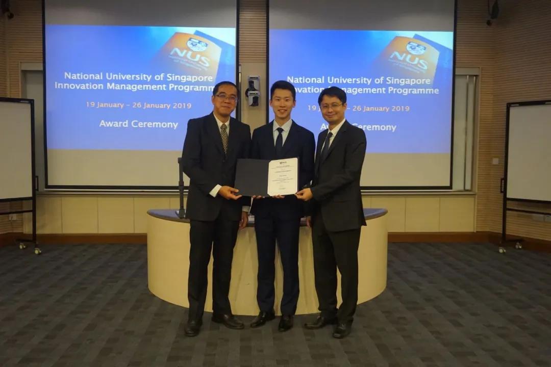 大一寒假,在另一位辅导员王书巍老师的建议下,张浩天参加了新加坡国立大学访学实训项目。访学过程中,张浩天了解到了许多前沿科学知识,从精密的实验仪器到电子信息领域的最新发展动态。尽管当时的他对老师们的介绍一知半解,这段经历却也在他的心中种下了一颗科研的种子。在新国大短短的几周时间里,张浩天近距离地感受到了世界一流高校的学习氛围,也更加坚定了他继续深造的决心。