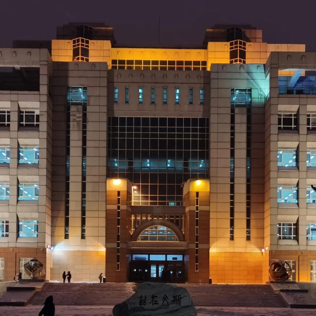 昏黄的路灯氤氲着傍晚的东师