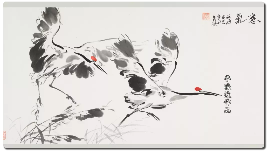 鲁晓波独爱画鹤,鹤,象征君子,高洁心性,高妙才能,创作中,他保持中锋用笔,S形长线条,保留了鹤自然的律动,仙姿逸态、神采跃然。他画鹤的方式,您可能想象不到,部分的构图、草稿,是在电子板上完成的,于是在他笔下的鹤,除了君子的古意象征外,更多了几分当代的流动和活脱。