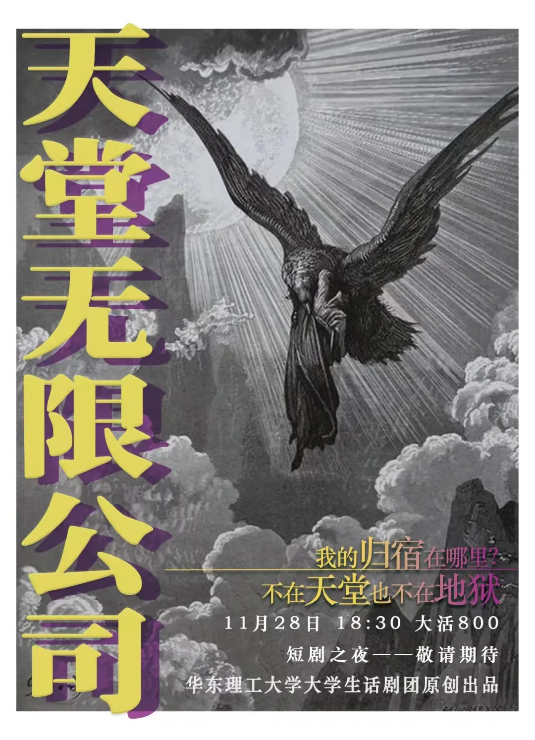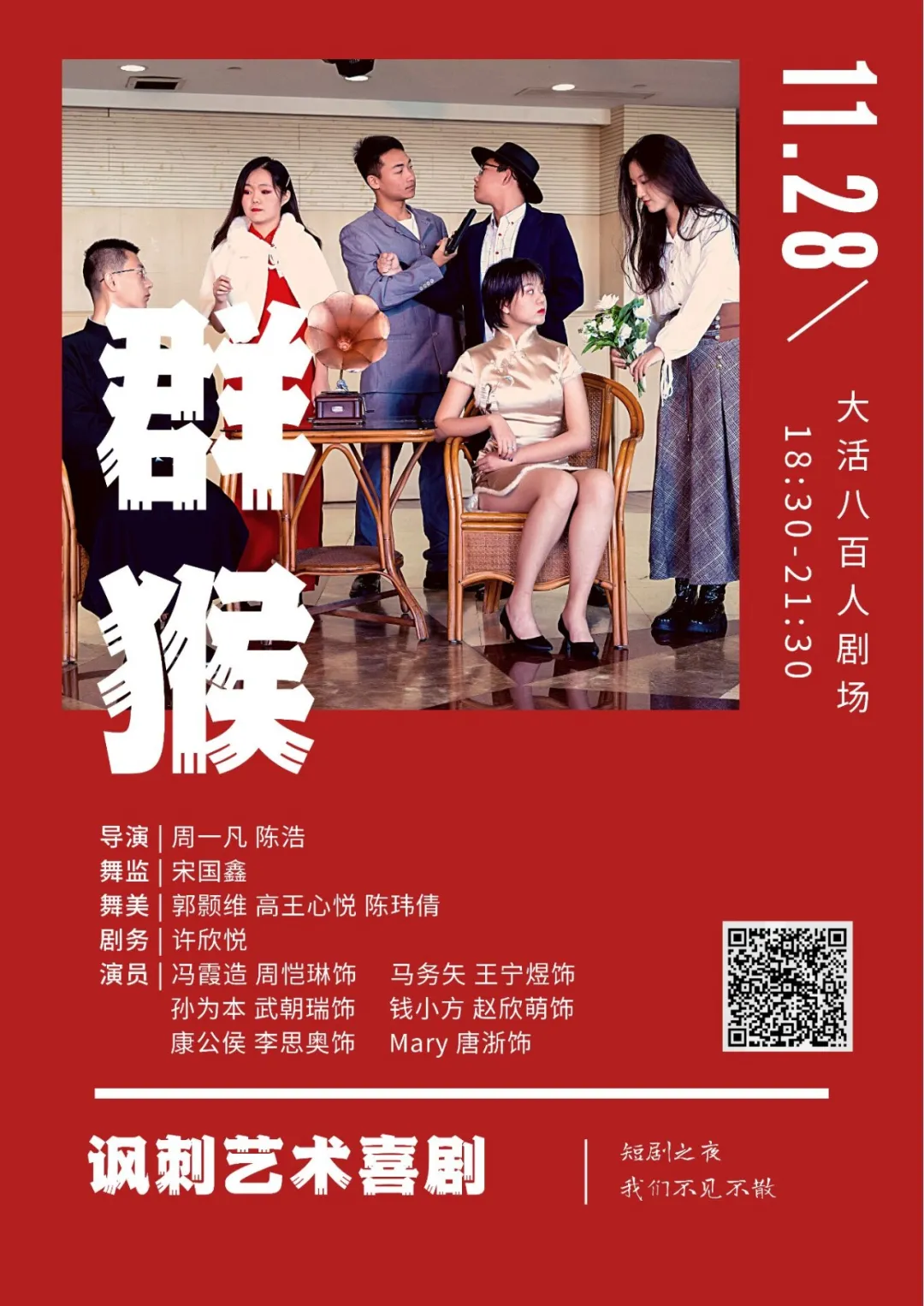 本年度“短剧之夜”不仅有原创剧目《供词》《天堂无限公司》,还有由经典剧目改编的《演砸了》《黑道父子》《在茫茫大海上》《群猴》。欢笑与泪水齐飞,哲思与辩证共一堂。“短剧之夜”由校话剧团精心出品,期望为您校园生活增添一抹亮色。