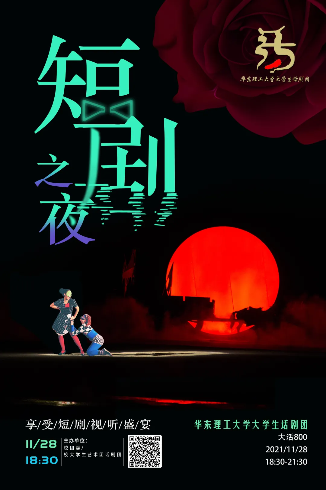 华东理工大学大学生话剧团2021“短剧之夜”将在11月28日晚18:30于大学生活动中心800人剧场拉开帷幕。