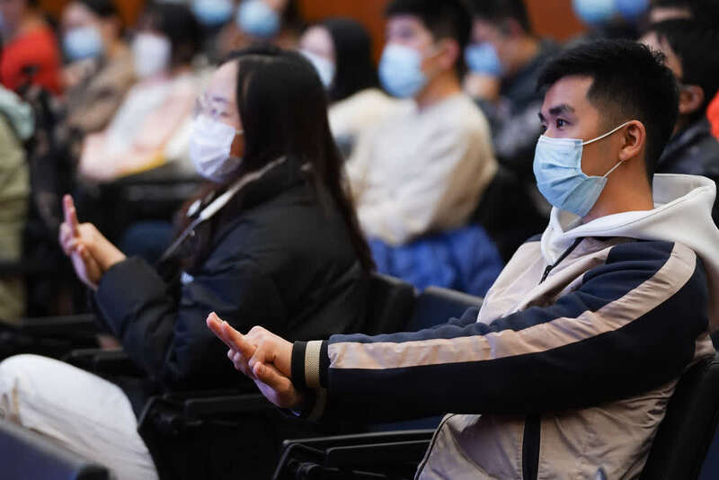11月28日,清华大学举办面向冬奥学生志愿者的“心肺复苏及AED使用急救技能”工作坊,由清华大学医院医生对学生志愿者进行心肺复苏术、自动除颤器(AED)使用等基本急救技能的讲授与培训。新华社记者 鞠焕宗 摄影报道