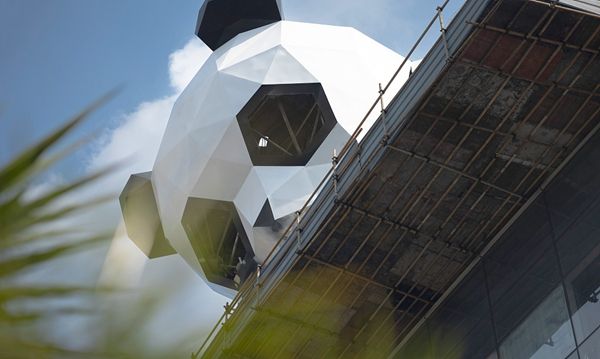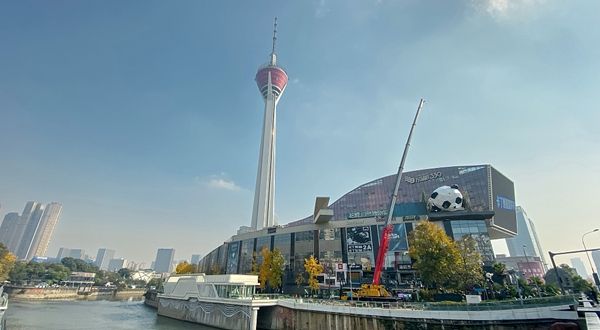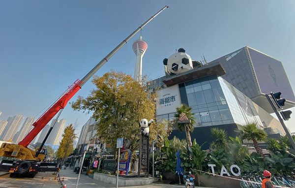 2021年12月1日,成都又一只大熊猫“爬楼”,339购物中心上新大熊猫雕塑。红星新闻 吕国应摄