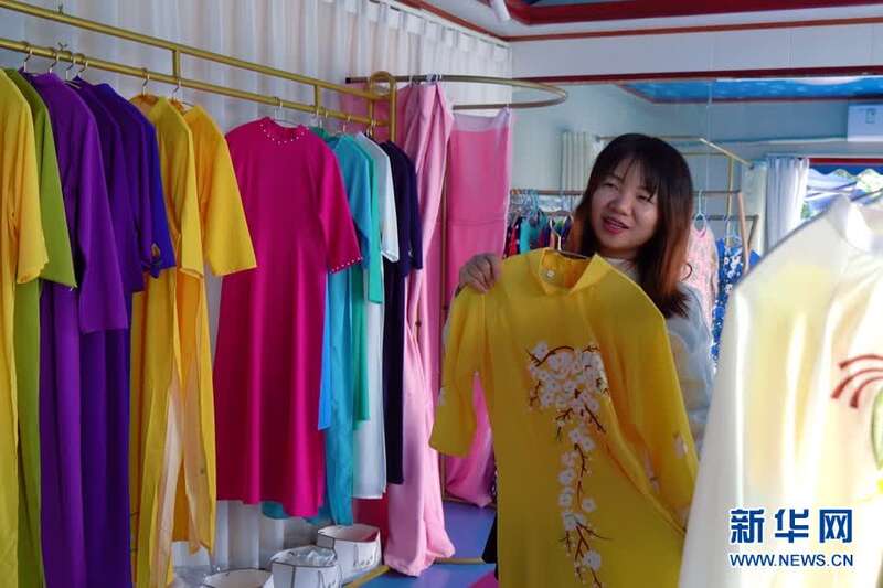 陈莹莹在店里展示京族服装。新华网 刘君 摄