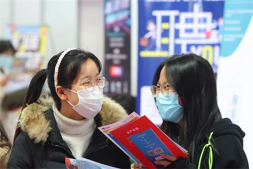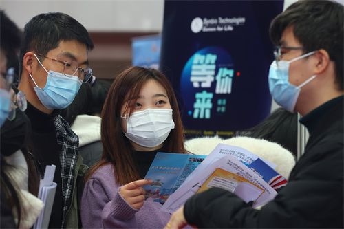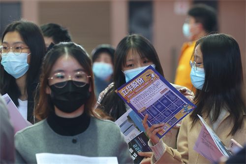 2021年12月4日,江苏省农林生物类暨南京农业大学2022届毕业生专场招聘会在南京农业大学举行,200余家涉农单位携万余岗位前来抛出“橄榄枝”。不少涉农企业表示,当前处于战略转型期,在农产品新品种的栽培育种和科研上的投入有所加大,涉农领域高端技术人才更受青睐。图为大学生在招聘企业展台前驻足。 中新社记者 泱波 摄