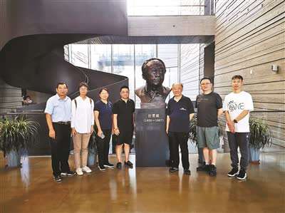 嘉宾们在纪念馆汪曾祺塑像前合影