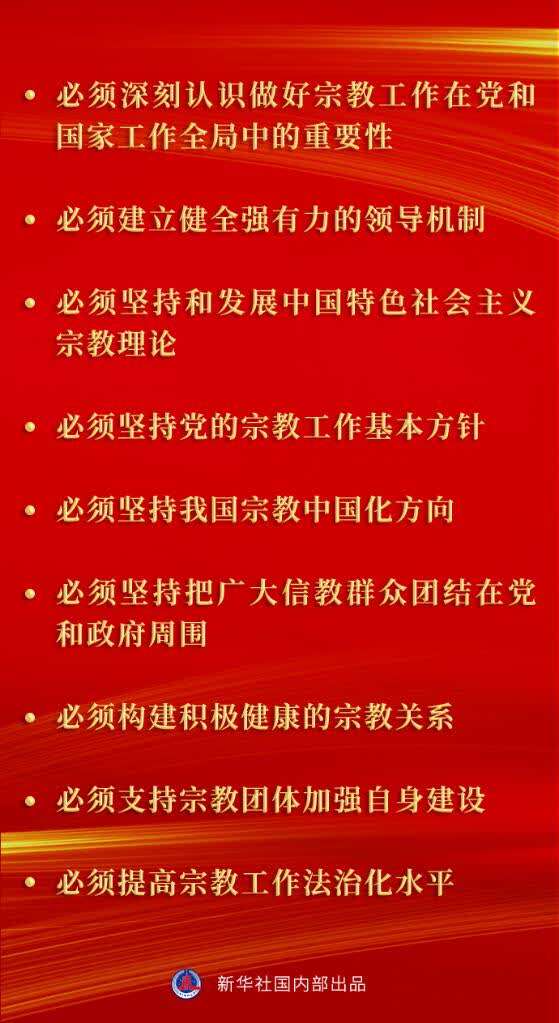 党的十八大以来,以习近平同志为核心的党中央提出一系列关于宗教工作的新理念新举措,回答了新时代怎样认识宗教、怎样处理宗教问题、怎样做好党的宗教工作等重大理论和实践问题。这一系列新理念新举措可以概括为“九个必须”——