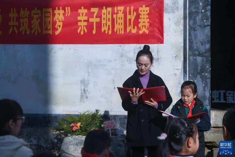 12月5日,一对母女在亲子朗诵比赛上朗诵好家风故事。