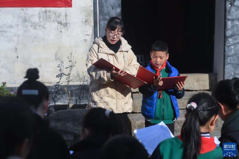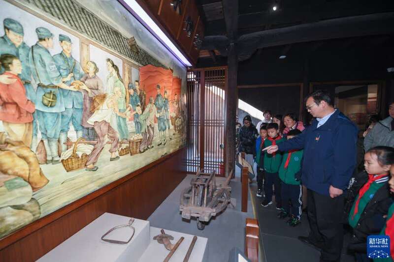 12月5日,高虹镇的纪检干部在高虹新四军纪念馆给高虹小学学生和家长介绍新四军在天目山地区抗战的历史。