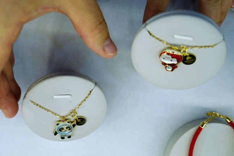 北京冬奥特许商品国庆假期上新,以冬奥吉祥物“冰墩墩”和冬残奥会吉祥物“雪容融”为主题的饰品。新华社记者 张晨霖 摄
