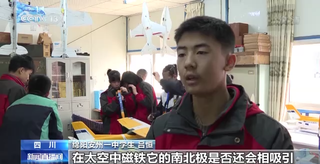 四川绵阳安州一中学生 吕恒:我想看王亚平老师演示在太空中磁铁它的南北极是否还会相吸引,如果吸引的话,可以应用在航天服的拆卸、拼接或者是空间站的对接,让它更准确。