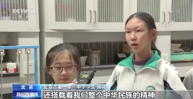 北京市第一零一中学学生 陈依:火箭(发射)升空会有倒计时,每次他数到零的时候,就是我最激动的时候。看到火箭缓缓地往空中去上升,我的心里就会觉得特别骄傲。因为我觉得我们的火箭上不仅搭载着三个中国人,还搭载着我们整个中华民族的精神。