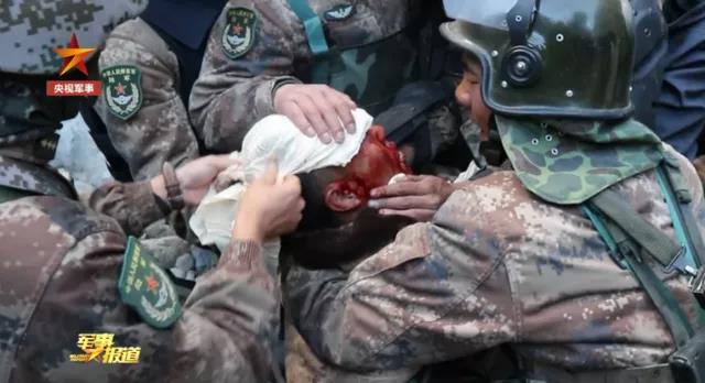 祁发宝被战友们救到一边,意识已经模糊。包扎伤口时,他突然一把扯掉头上的绷带,还想往前冲,但这一扯用尽了他昏迷前最后一丝力气,随即重重倒地。