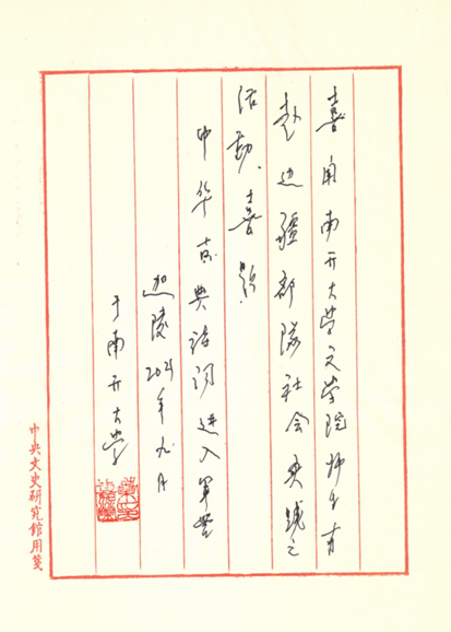 叶嘉莹教授题词“中华古典诗词进入军营”。刘帅/摄