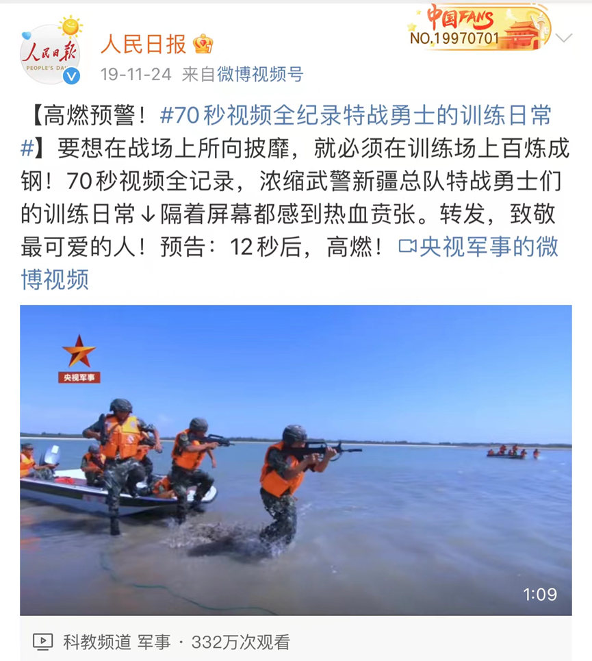 有一名叫陈戈的战士,参加了宣传技能培训班后,2019年底,创作的作品被央视军事发布,得到人民日报微博转载,获得3百余万次的播放量。“如今陈戈已在央视等发布报道500余篇,成长为部队的宣传骨干。像陈戈这样的例子还有很多。”