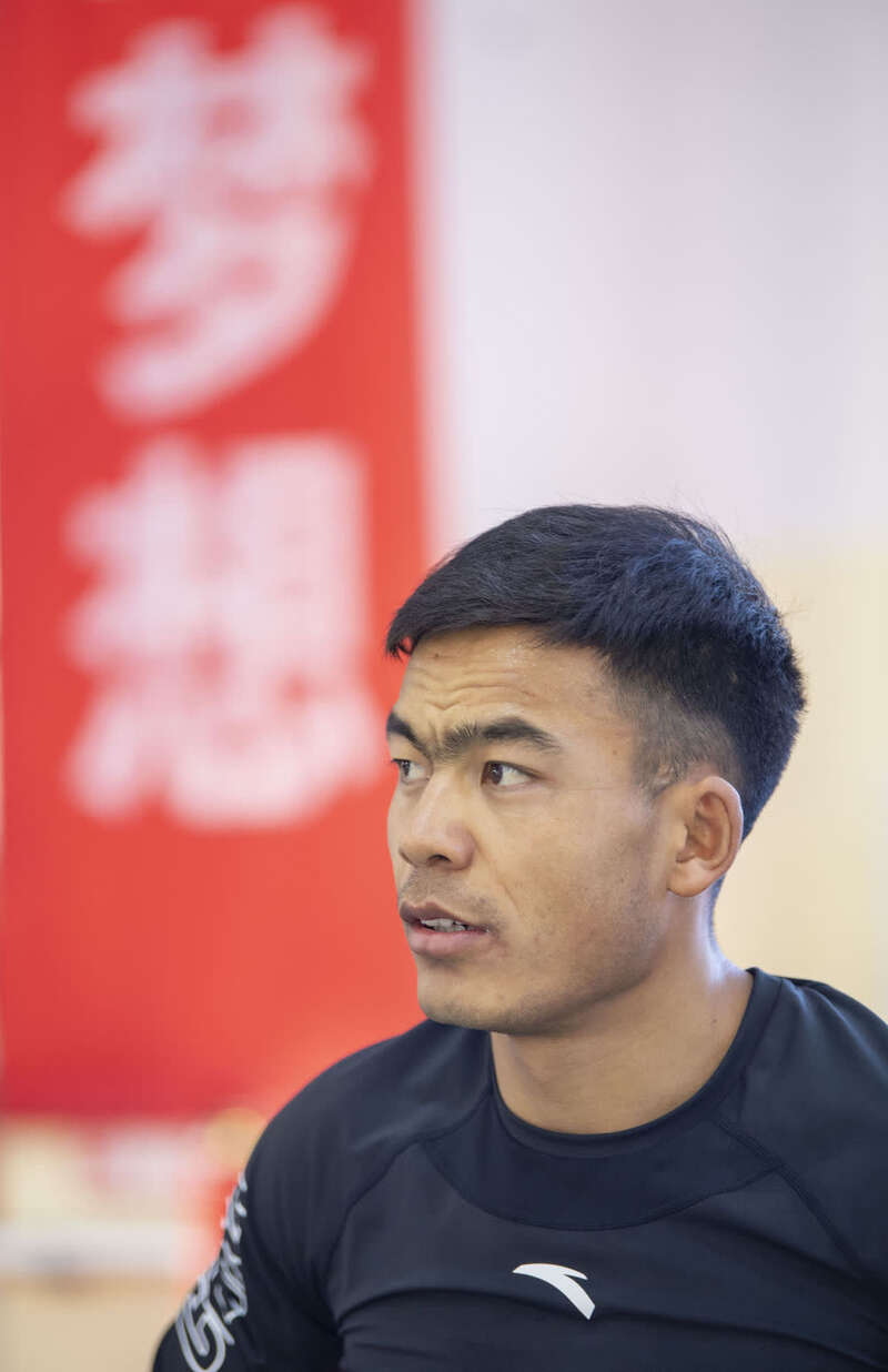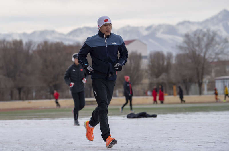 ↑这是完成当日的积分赛后,吐尔松江·布尔力克和越野滑雪国家集训队队友在温泉县体育场放松跑步(2021年11月22日摄)。