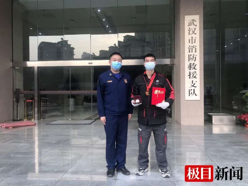 12月10日下午,武汉市消防救援支队新闻宣传处负责人为张裕颁发“武汉市优秀消防志愿者”荣誉证书。