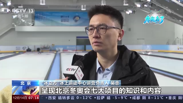“冰立方”冰上运动中心运营负责人 吴念:作为北京冬奥会冰上体育体验项目,呈现北京冬奥会七大项目的知识和内容,我们还将通过VR、AR互动体验小游戏等形式来向观众展示冬奥的一些文化内涵。在冬奥会后,我们将通过简单的转换,即刻将这两片场地变成向公众开放的冰壶和冰球运动场地。