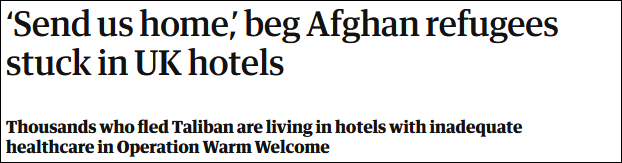 《卫报》10月9日报道:住在英国酒店的阿富汗难民,乞求把他们送回家。