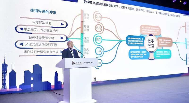 腾讯集团副总裁程武在致辞中表示,2016年,故宫携手腾讯探索文博数字化,一方面通过“新文创”打造了古画会唱歌等刷屏级作品,让传统文化成为年轻一代的潮流文化。同时以科技助力文物数字采集等数字基础设施,并打造数字故宫等微信小程序,让文物在云端触手可及,探索出一条有中国特色的文博创新模式。