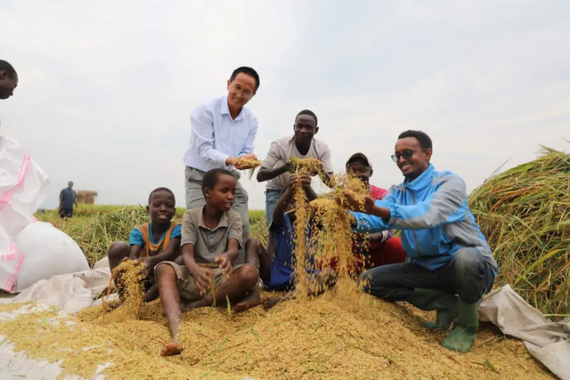 ▲ 在中国多名援助布隆迪农业专家的帮助下,中国杂交水稻技术帮助布多地水稻获得高产。图为2020年10月,布隆迪民众和中国专家共庆水稻丰收的场景。