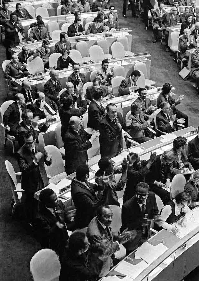 ▲ 1971年10月25日,第26届联合国大会通过了关于恢复中华人民共和国在联合国一切合法权利的第2758号决议,承认中华人民共和国政府的代表是中国在联合国组织的唯一合法代表。