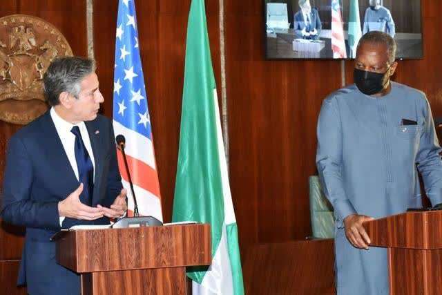 ▲ 2021年11月18日,美国国务卿布林肯到访尼日利亚,抹黑中国让非洲国家背上“无法偿还的巨额债务”,遭到尼日利亚外长奥马尼亚当场反驳。