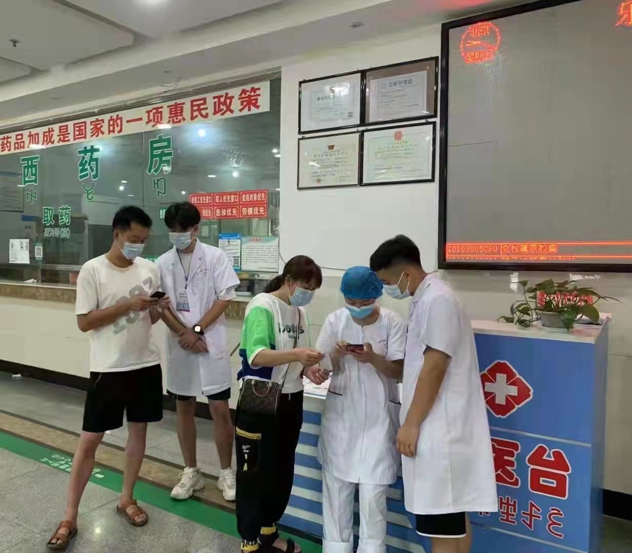 他们在预检、导医等岗位上,成了医务人员的得力助手。