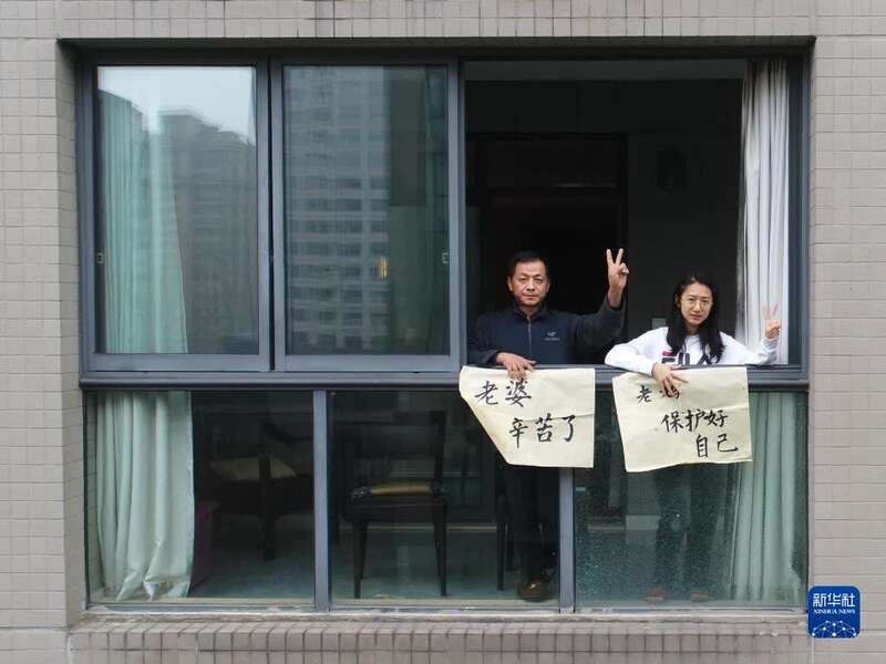 浙江省绍兴市上虞区百官街道阳光假日小区是上虞本轮疫情首例确诊病例所在小区,也是最早进行封闭管理的小区。小区内的多户居民已经在家中经历了10天的居家隔离。新华社记者在社区工作者的协助下随机抽取了十户居民,操作无人机来到他们窗前探视,转达他们对家人、对抗疫一线工作人员的问候和祝愿。