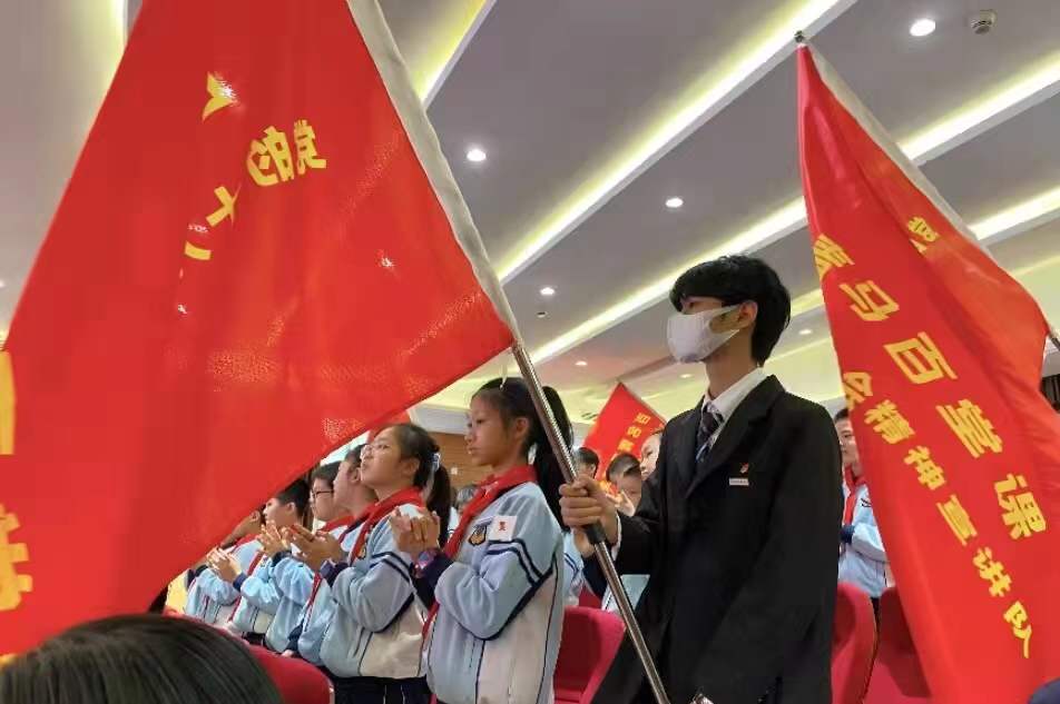 这堂队课由闽江学院青马班宣讲团成员展示,是福州市“百名青马百堂课”党的十九届六中全会精神主题宣讲活动首场示范课。活动启动仪式在福州市仓山区金港湾实验学校举行,活动由共青团福州市委、福州市学生联合会主办,闽江学院团委、团仓山区委等单位承办。
