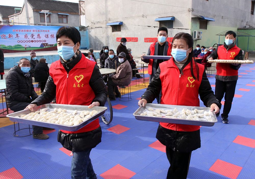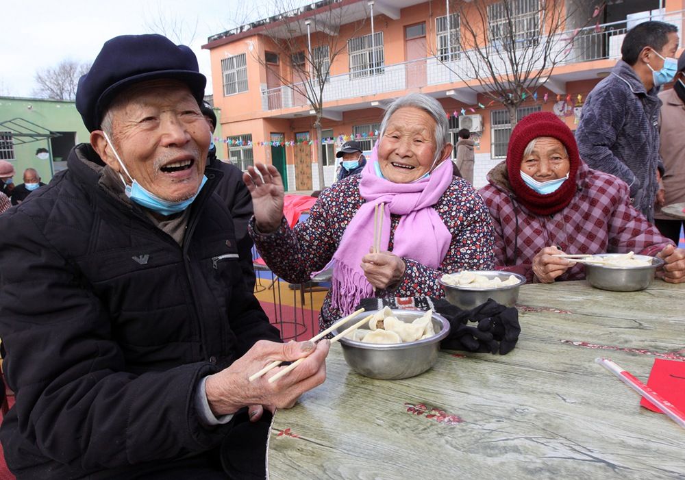 2021年12月18日,在河南省焦作市博爱县孝敬镇东原庄村,帮扶单位博爱县审计局组织党员志愿者、帮扶责任人,带着饺子馅来为全村80岁以上老人和脱贫户包饺子,开展“迎新年、感党恩、话振兴”迎冬至活动。老人们一边欣赏精彩节目,一边吃饺子,整个现场洋溢着温馨、祥和的浓厚氛围。博爱县审计局驻村帮扶以来,先后争取资金305.4万元,发展村里基础设施建设和产业项目,硬化道路、修排水沟、安装太阳能路灯、建设文化广场、修建游园和半地下温室大棚等,助力乡村振兴。