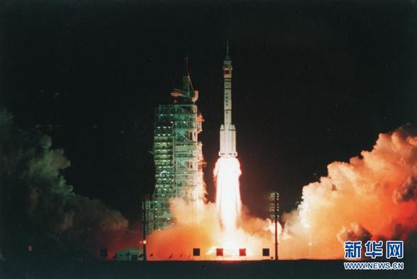 ▲1999年11月20日,神舟一号无人飞船在酒泉卫星发射中心发射升空。新华社发