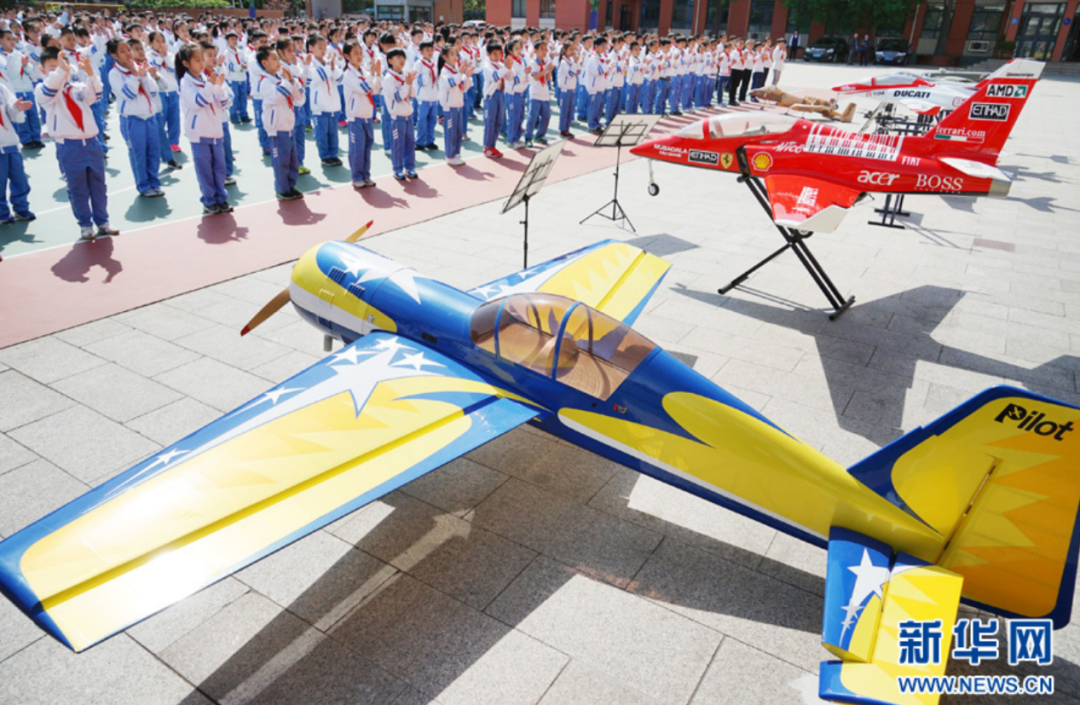 ▲2018年4月24日,“中国梦·腾飞”航空航天科普进校园主题活动现场展示的航模。新华社记者王晓明摄