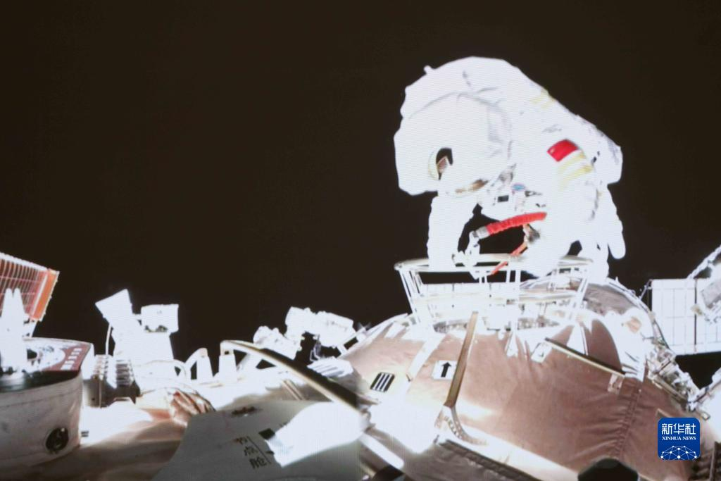 ▲2021年11月7日在北京航天飞行控制中心拍摄的神舟十三号航天员王亚平出舱画面。新华社记者郭中正摄