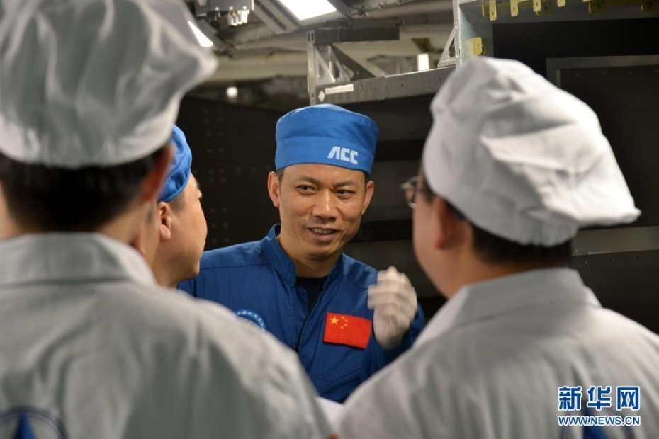 ▲2019年12月3日,航天员汤洪波在训练间隙与科研人员交流。新华社记者孔方舟摄