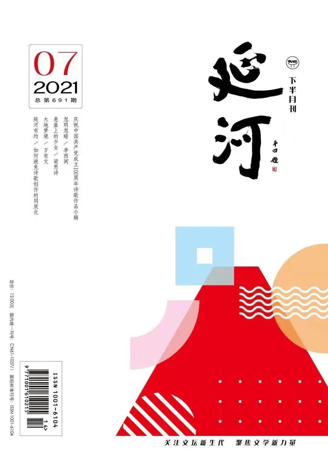 图为《延河》下半月刊2021年7期,梁思诗《悬崖上的少女》发表于上并被列在封面
