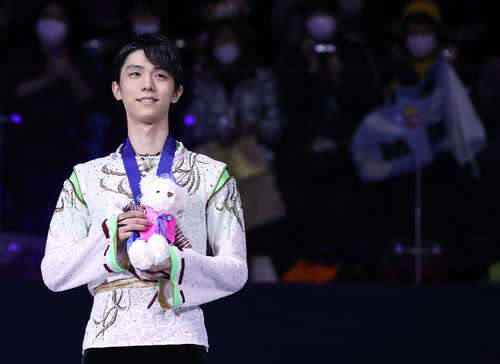 2021年3月27日,在瑞典斯德哥尔摩举行的世界花样滑冰锦标赛男子单人滑比赛中,日本选手羽生结弦以289.18分的总成绩获得季军。新华社/法新