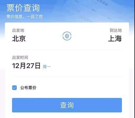 公布票价如何查询?进入铁路12306APP首页→更多→出行向导→查票价。输入票价查询的出发地、到达地和出发时间,勾选公布票价后,点击查询即可。