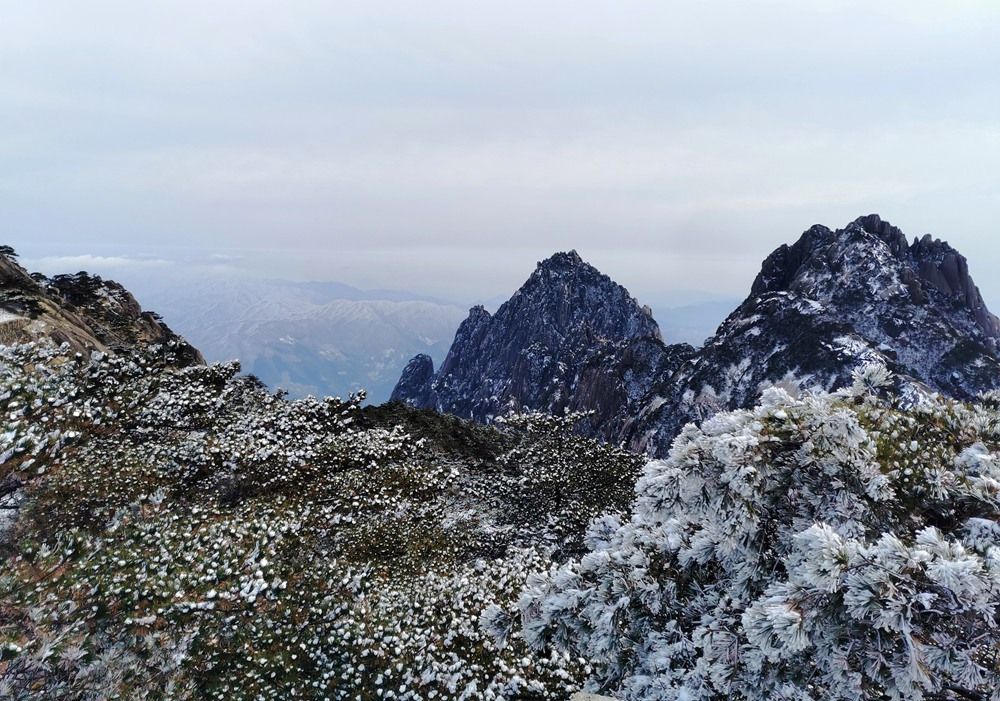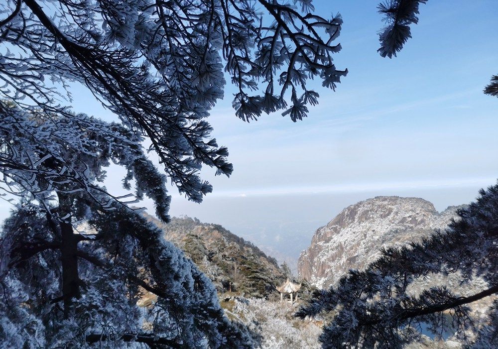 当日,雪后初晴的安徽省黄山市黄山风景区,宛如童话般的冰雪世界,分外妖娆。景区内,雾凇冰挂美轮美奂,披上银装的山峦在阳光的照耀下,更加壮美动人。