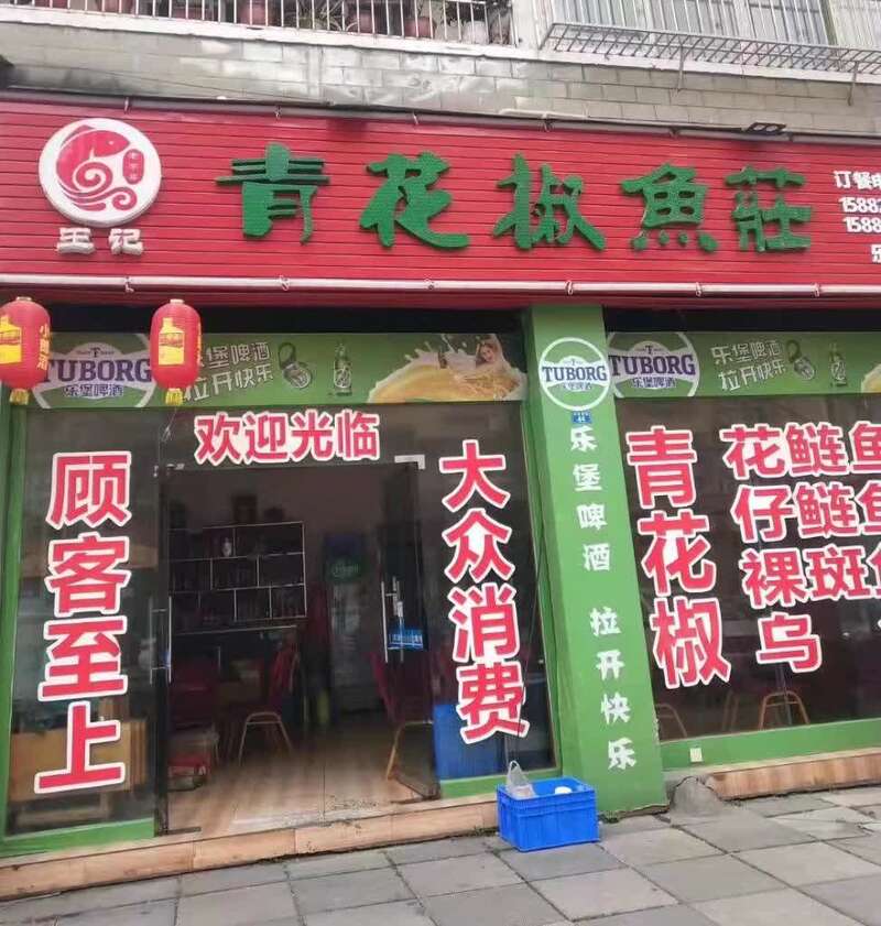 “王记青花椒鱼庄”的门头店招则是红底绿字。“将青花椒写上店招,是为了突出这个家喻户晓的原材料,不是作为餐饮服务商标使用。”老王说。