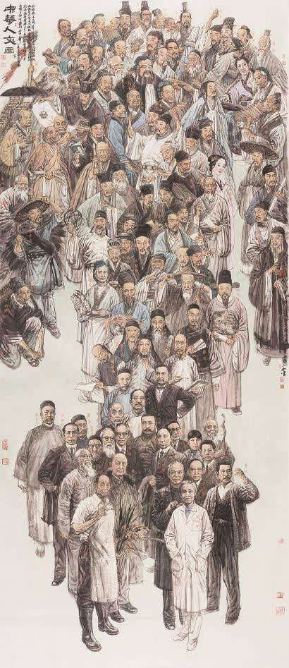 ◆ 冯远《中华人文图(二)》,中国画,390×170cm,2021